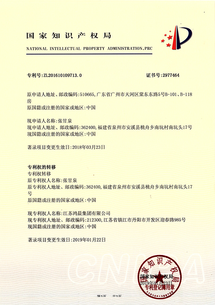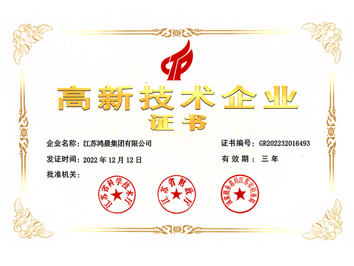 鴻晨集團(tuán)先后獲得了"國家高新企業(yè)""江蘇省質(zhì)量信用產(chǎn)品"、“全國質(zhì)量信譽(yù)產(chǎn)品"、“國家檢測達(dá)標(biāo)產(chǎn)品"等品質(zhì)證書。