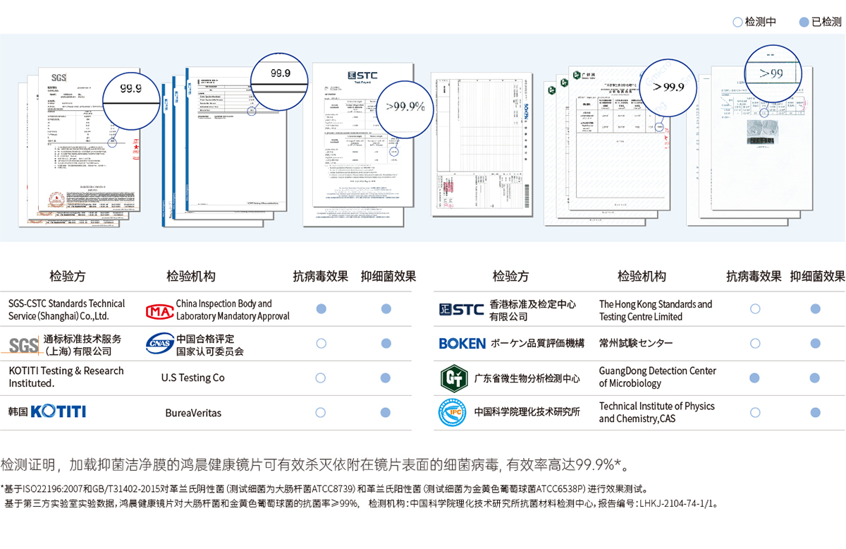 實驗證明:鴻晨健康鏡片有效滅活細菌病毒≥99%