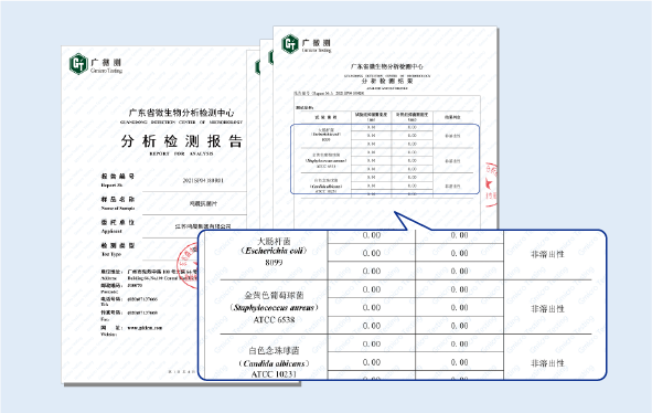 此次安全性檢測由廣東省微生物分析檢測中心檢測并出具報告。